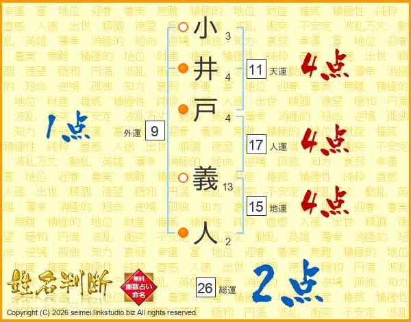 小(3画)井(4画)戸(4画) 義(13画)人(2画)