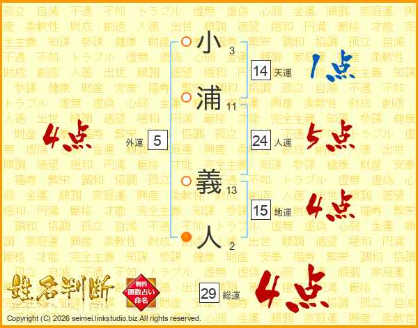 小浦義人さんの総運は29画の4点!