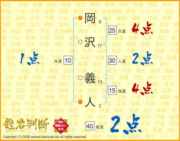 岡沢義人さんの総運は40画の2点!