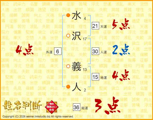 水(4画)沢(17画) 義(13画)人(2画)