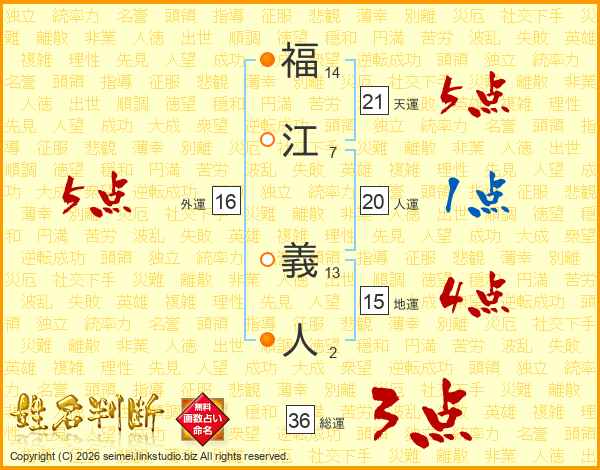福江義人さんの総運は36画の3点!
