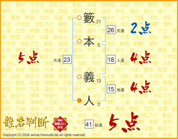 籔本義人さんの総運は41画の5点!