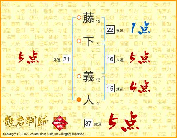 藤下義人さんの総運は37画の5点!