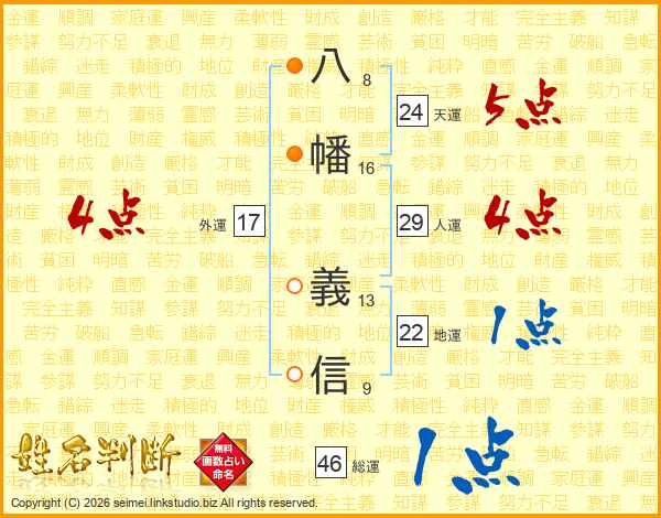八幡義信さんの総運は46画の1点!