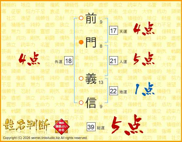 前門義信さんの総運は39画の5点!