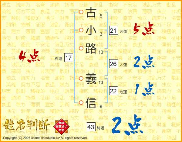 古小路義信さんの人運は26画の2点!