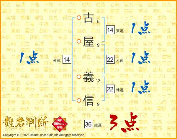 古屋義信さんの総運は36画の3点!