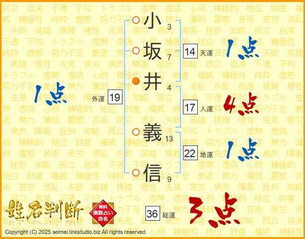 小坂井義信さんの人運は17画の4点!