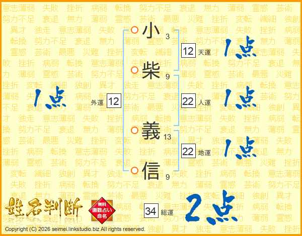 小柴義信さんの人運は22画の1点!