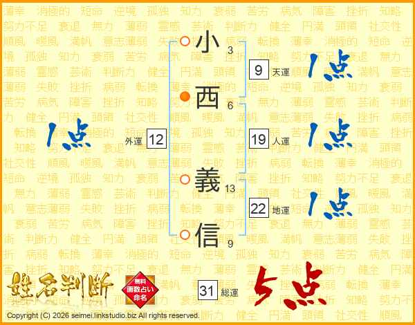 小西義信さんの総運は31画の5点!