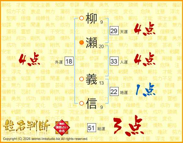 柳瀬義信さんの人運は33画の4点!