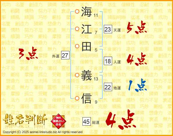 海(11画)江(7画)田(5画) 義(13画)信(9画)