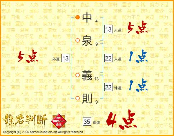 中泉義則さんの総運は35画の4点!