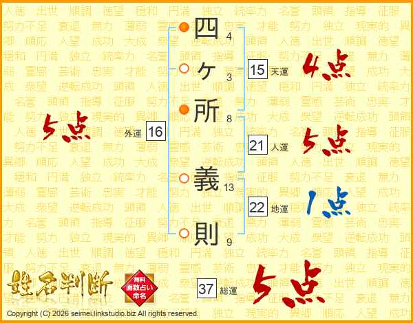 四ヶ所義則さんの総運は37画の5点!