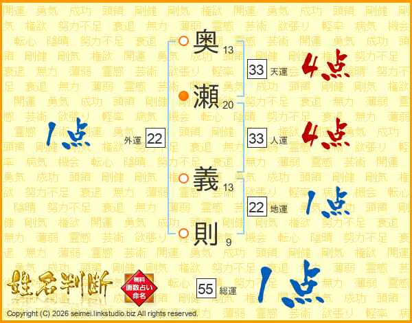 奥瀬義則さんの天運は33画の4点!