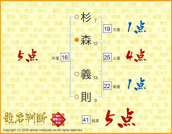 杉森義則さんの人運は25画の4点!