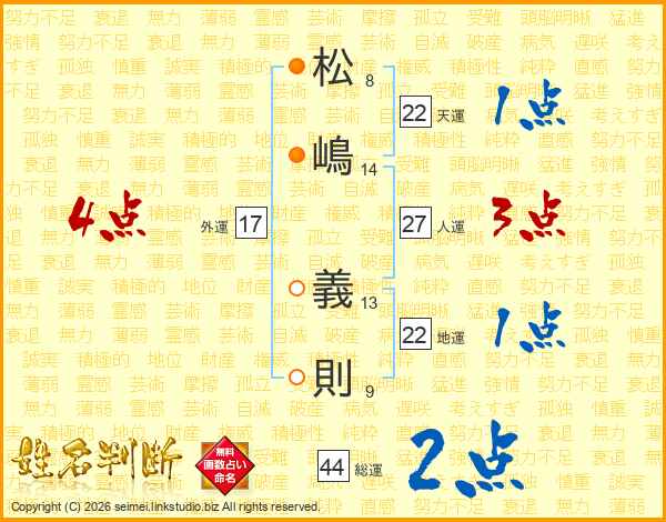 松嶋義則さんの総運は44画の2点!