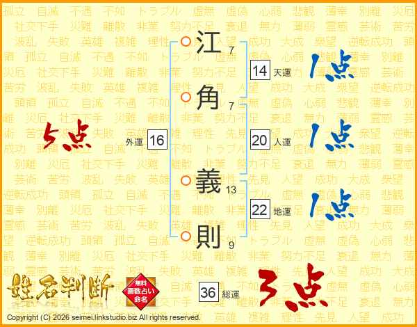 江角義則さんの総運は36画の3点!