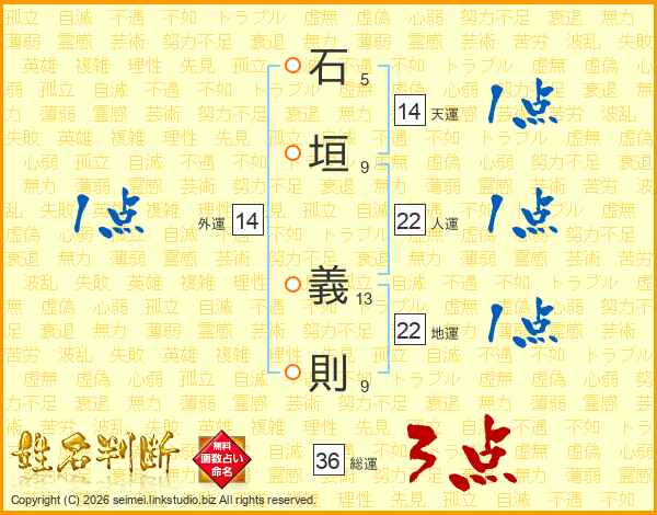 石垣義則さんの天運は14画の1点!