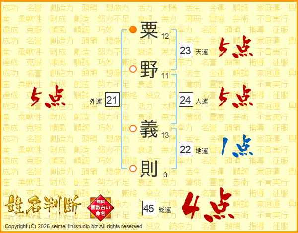 粟野義則さんの総運は45画の4点!