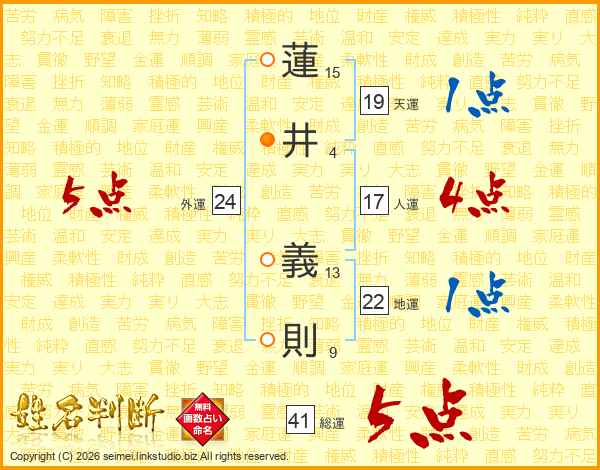 蓮井義則さんの総運は41画の5点!