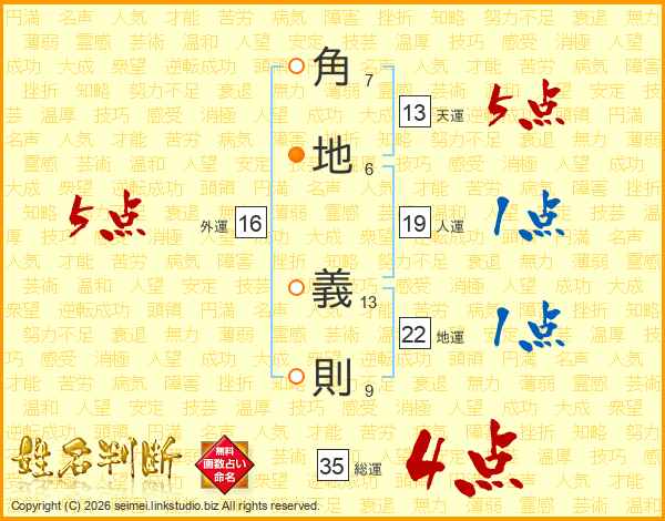 角地義則さんの天運は13画の5点!