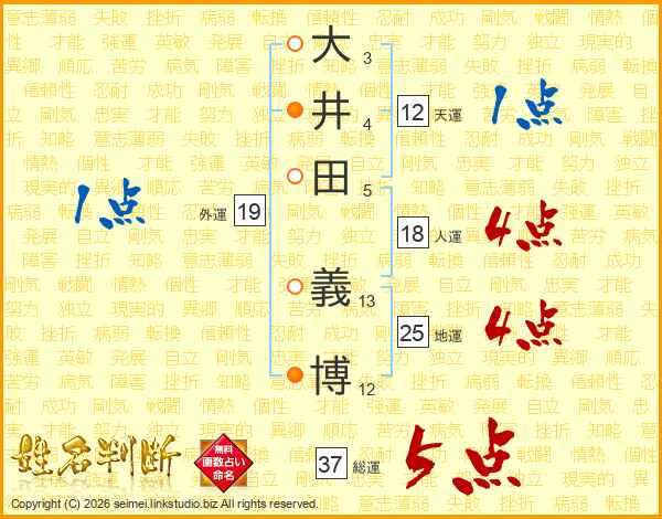 大(3画)井(4画)田(5画) 義(13画)博(12画)