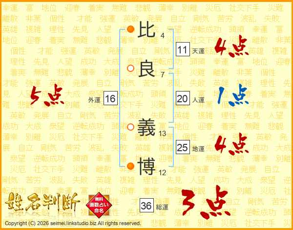 比良義博さんの総運は36画の3点!
