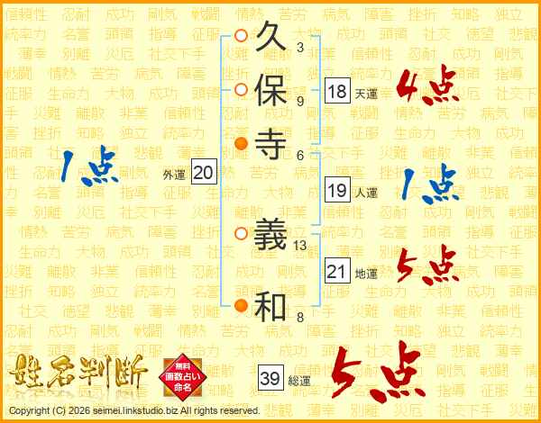 久保寺義和さんの総運は39画の5点!