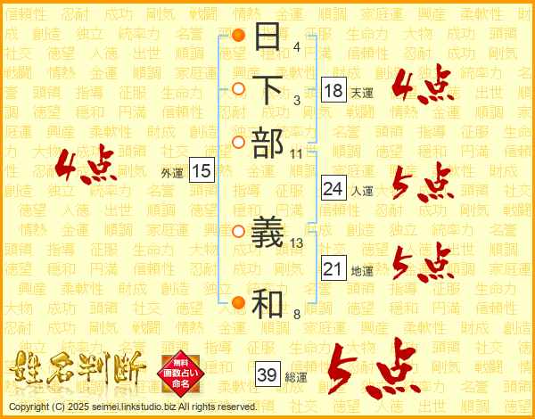 日下部義和さんの総運は39画の5点!