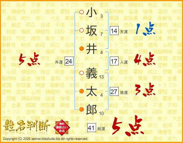 小(3画)坂(7画)井(4画) 義(13画)太(4画)郎(10画)