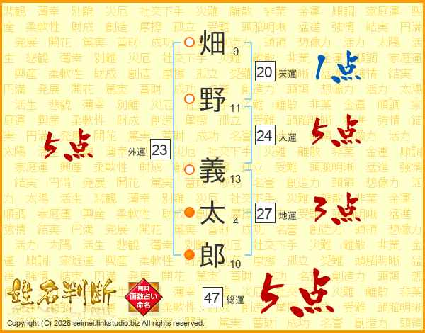 畑野義太郎さんの総運は47画の5点!