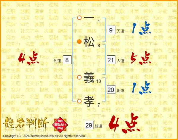 一松義孝さんの総運は29画の4点!