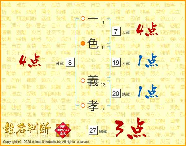 一(1画)色(6画) 義(13画)孝(7画)