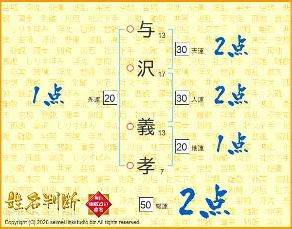 与沢義孝さんの総運は50画の2点!