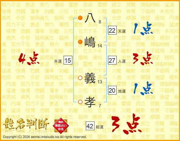 八嶋義孝さんの総運は42画の3点!