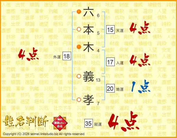 六本木義孝さんの総運は35画の4点!