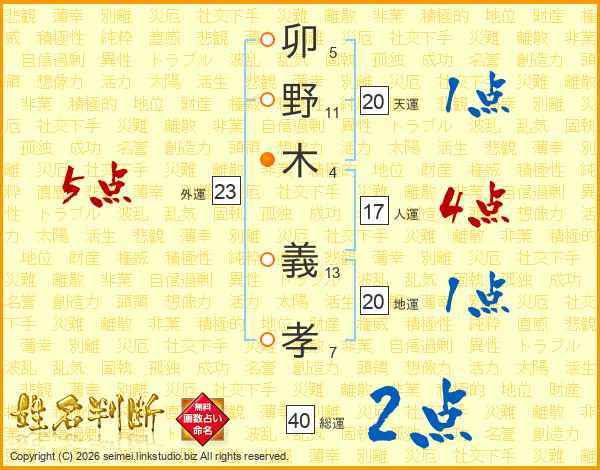 卯野木義孝さんの総運は40画の2点!