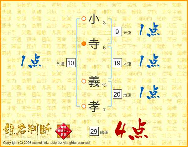 小寺義孝さんの総運は29画の4点!