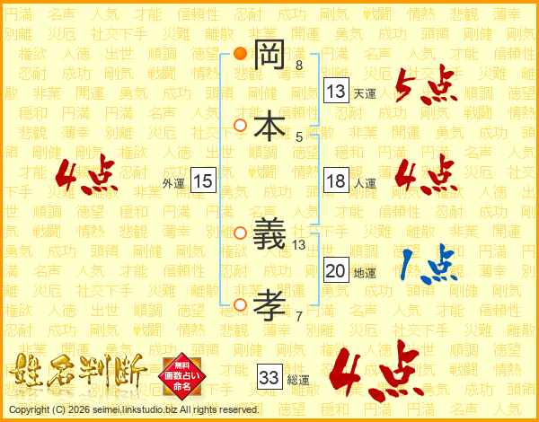 岡本義孝さんの総運は33画の4点!