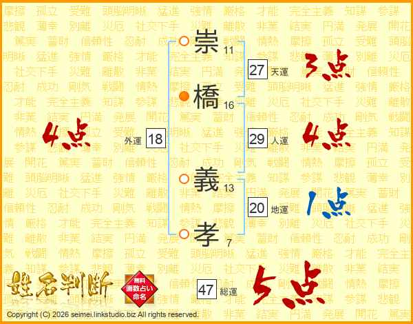 崇橋義孝さんの総運は47画の5点!