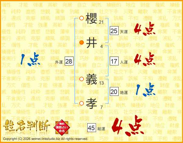 櫻(21画)井(4画) 義(13画)孝(7画)