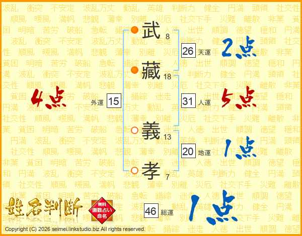 武藏義孝さんの天運は26画の2点!