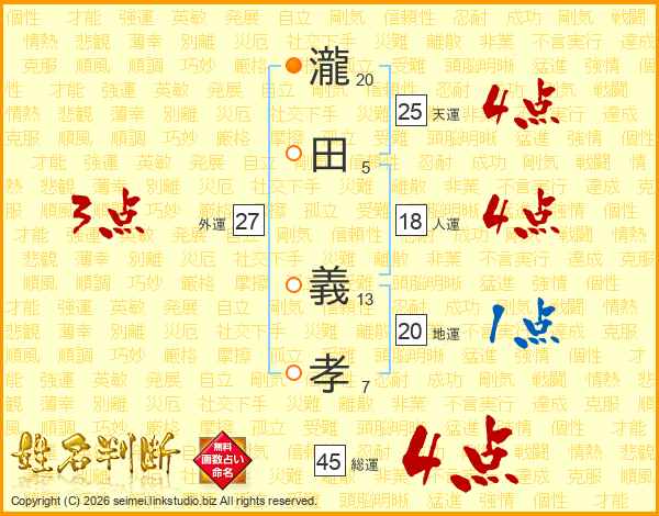 瀧田義孝さんの天運は25画の4点!