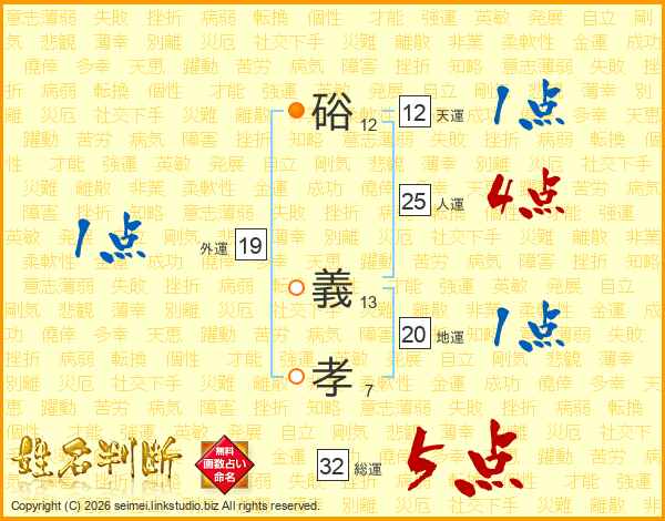 硲義孝さんの総運は32画の5点!