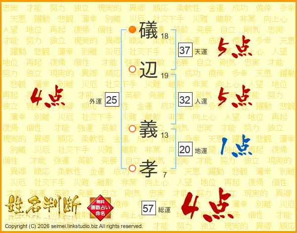 礒辺義孝さんの総運は57画の4点!