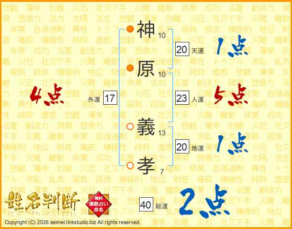 神原義孝さんの総運は40画の2点!