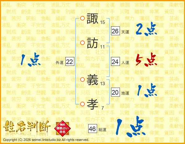 諏訪義孝さんの総運は46画の1点!