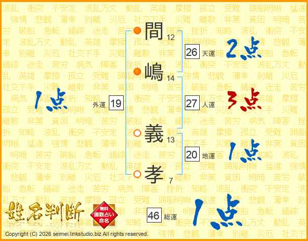 間嶋義孝さんの天運は26画の2点!