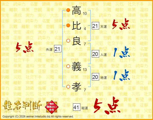 高(10画)比(4画)良(7画) 義(13画)孝(7画)